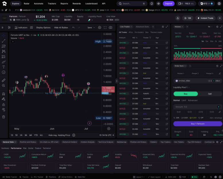 The Trade Tab enables users to execute trades on selected coins through RAX’s advanced routing infrastructure.